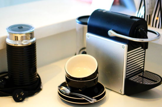 The suite features a separate large bedroom, huge bathroom and main living area with kitchenette. We got really excited upon closer inspection of the kitchen to find a Nespresso coffee pod machine, real coffee to wake up to first thing!