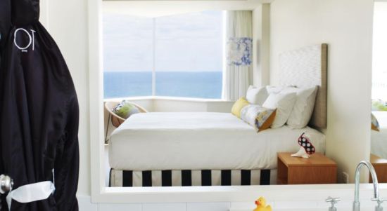 What we love about the QT Hotel is the top suite doesn’t cost an exorbitant amount more than their deluxe rooms. For $279 per night (booked through Lastminute.com) we were in the top tier, the QT Ocean View King Suite with great views of the beach that command your gaze the second you enter. The suite was only $50 more than a deluxe room.